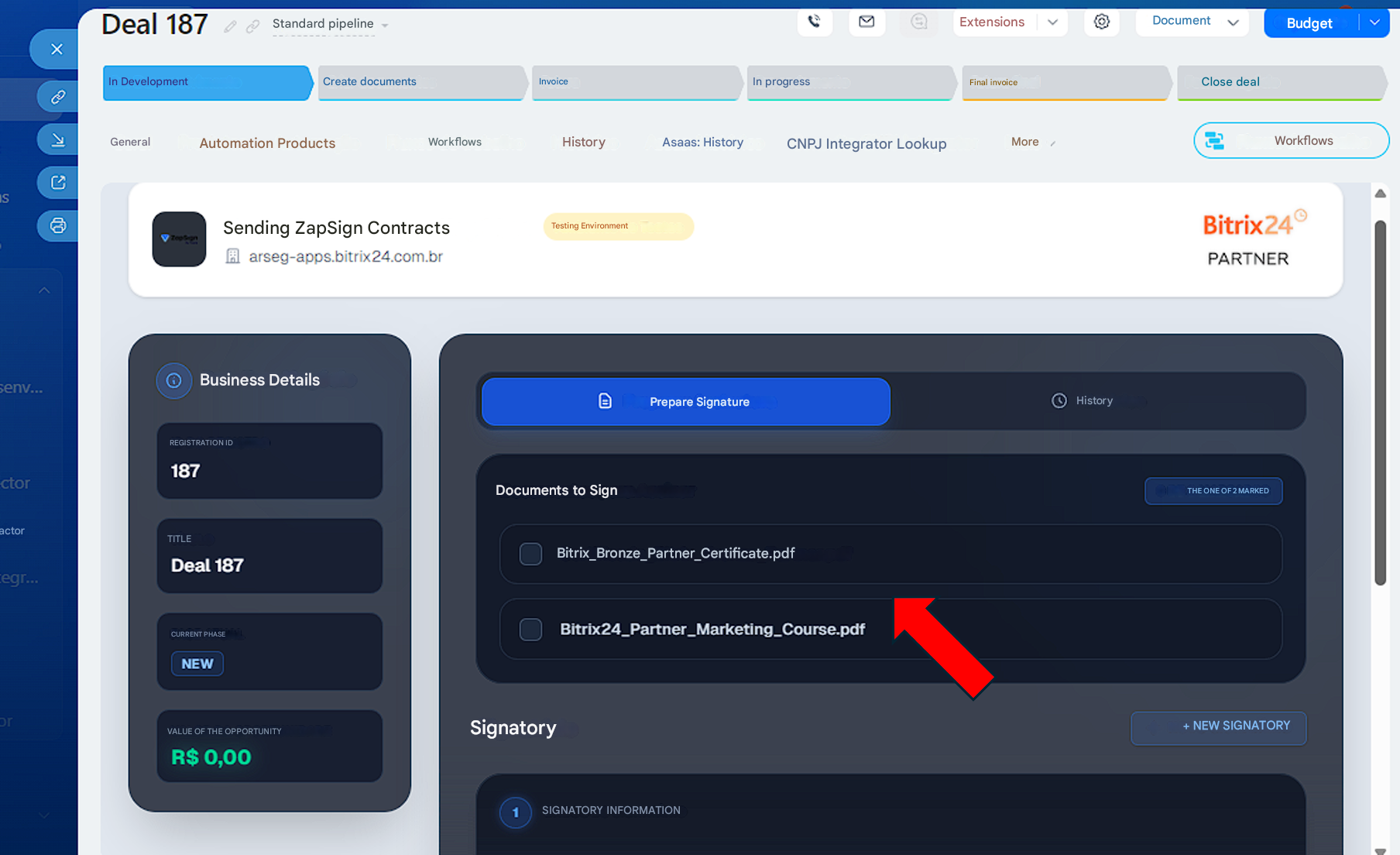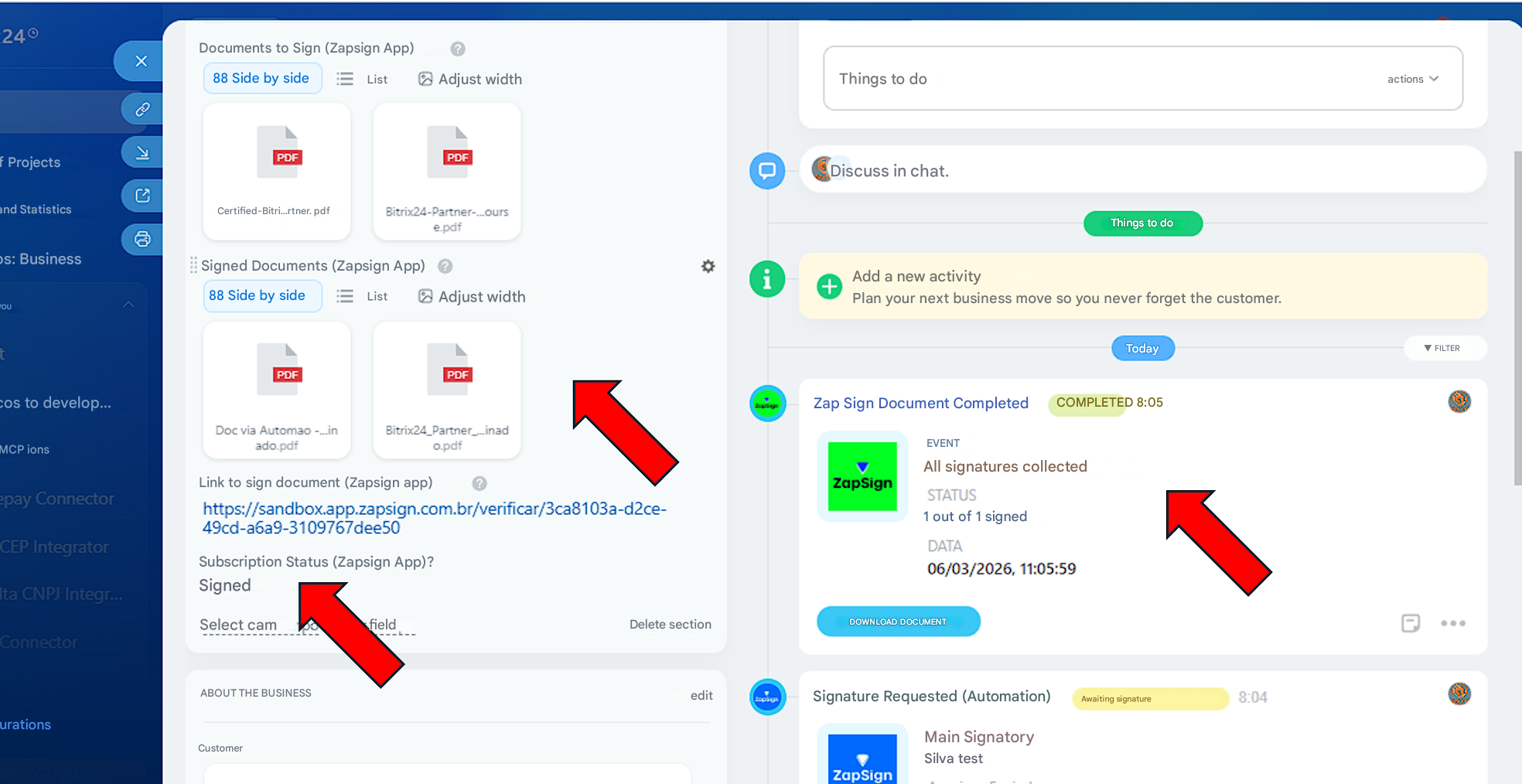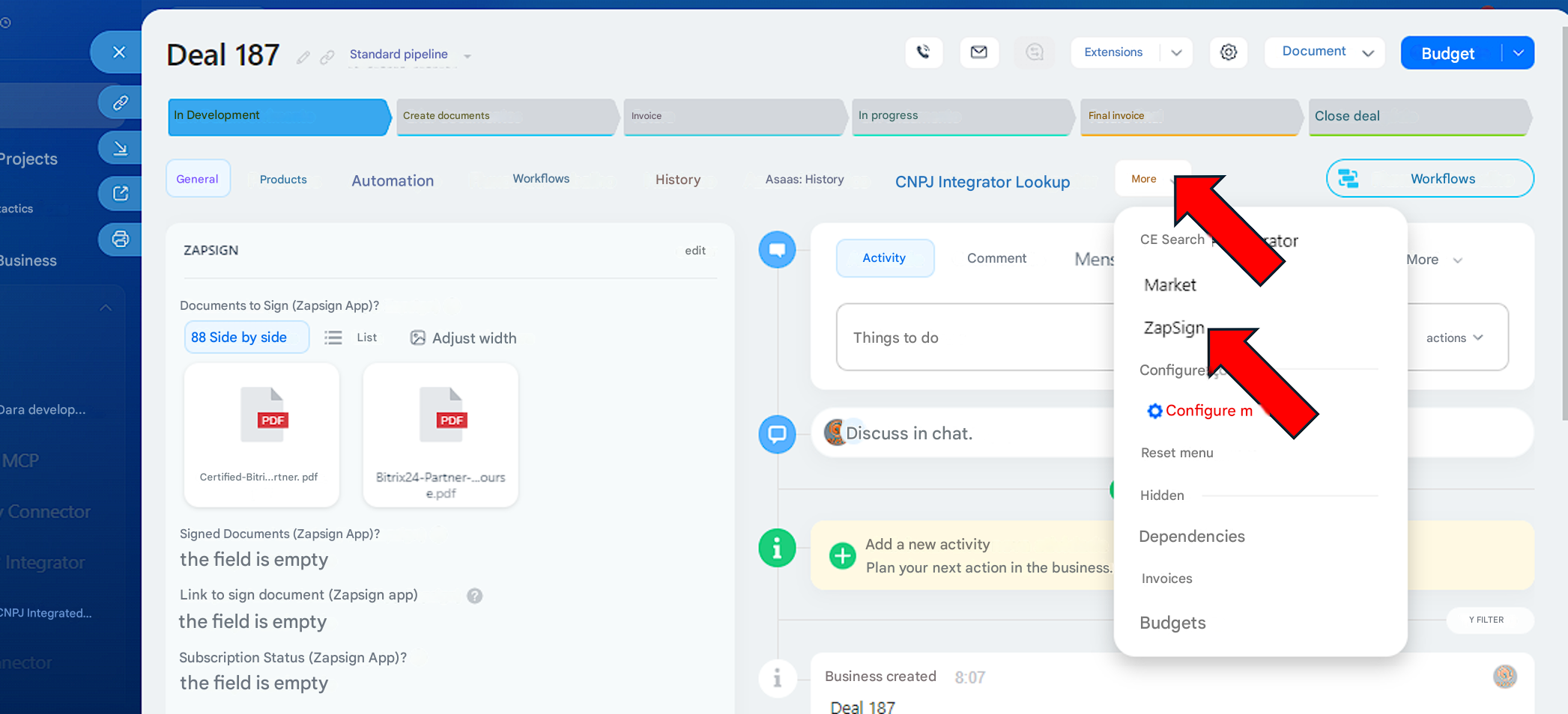 Create and send contracts via ZapSign in Bitrix24.