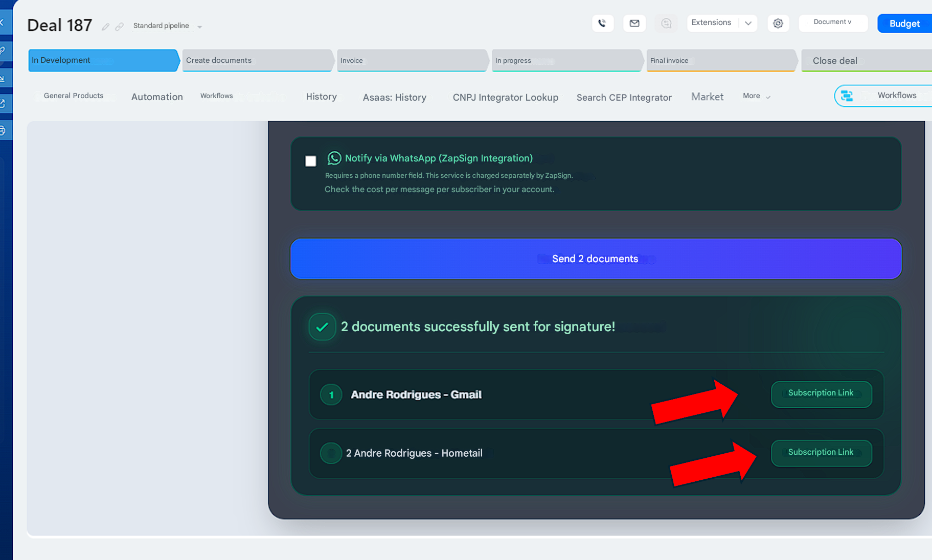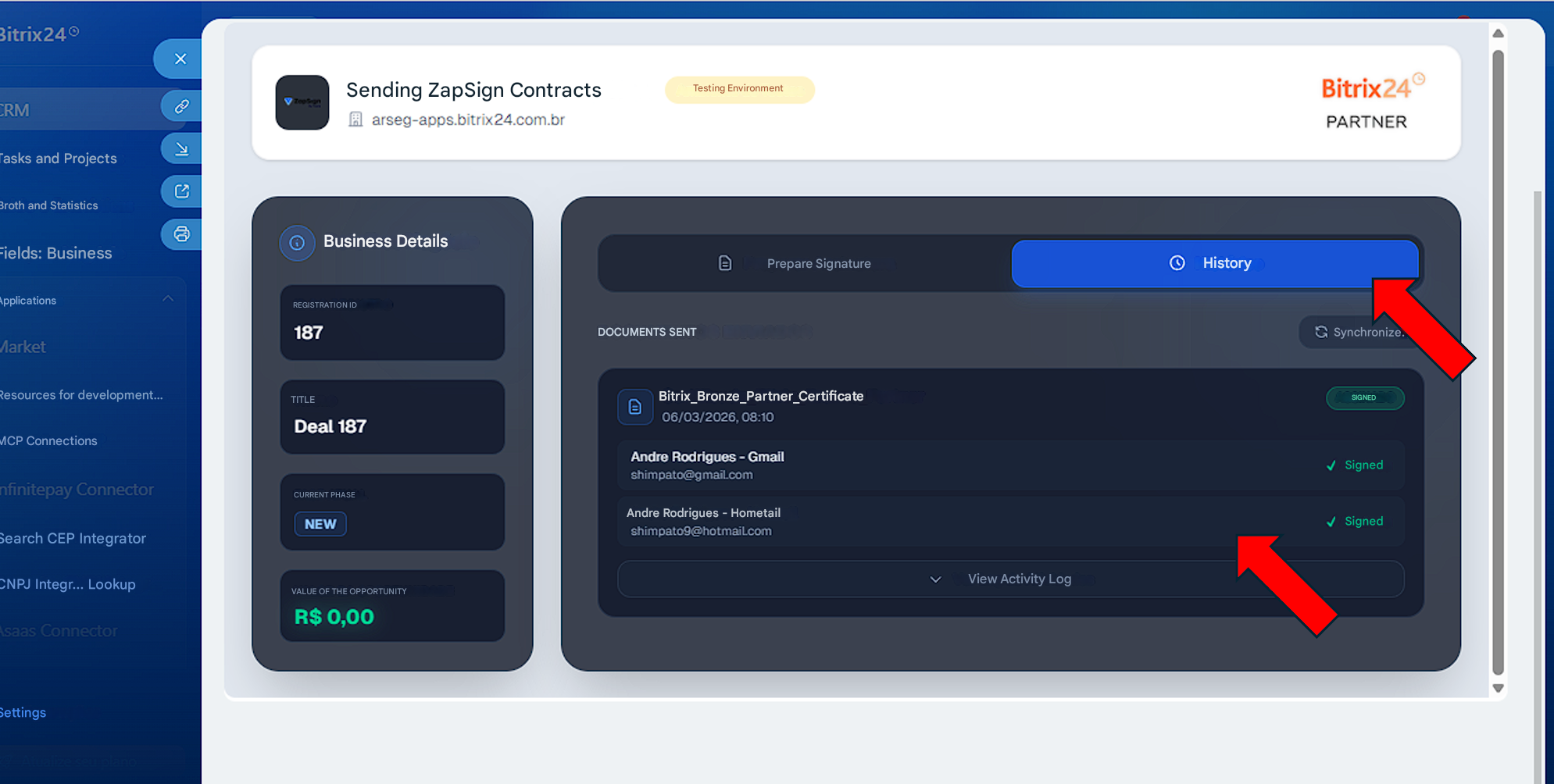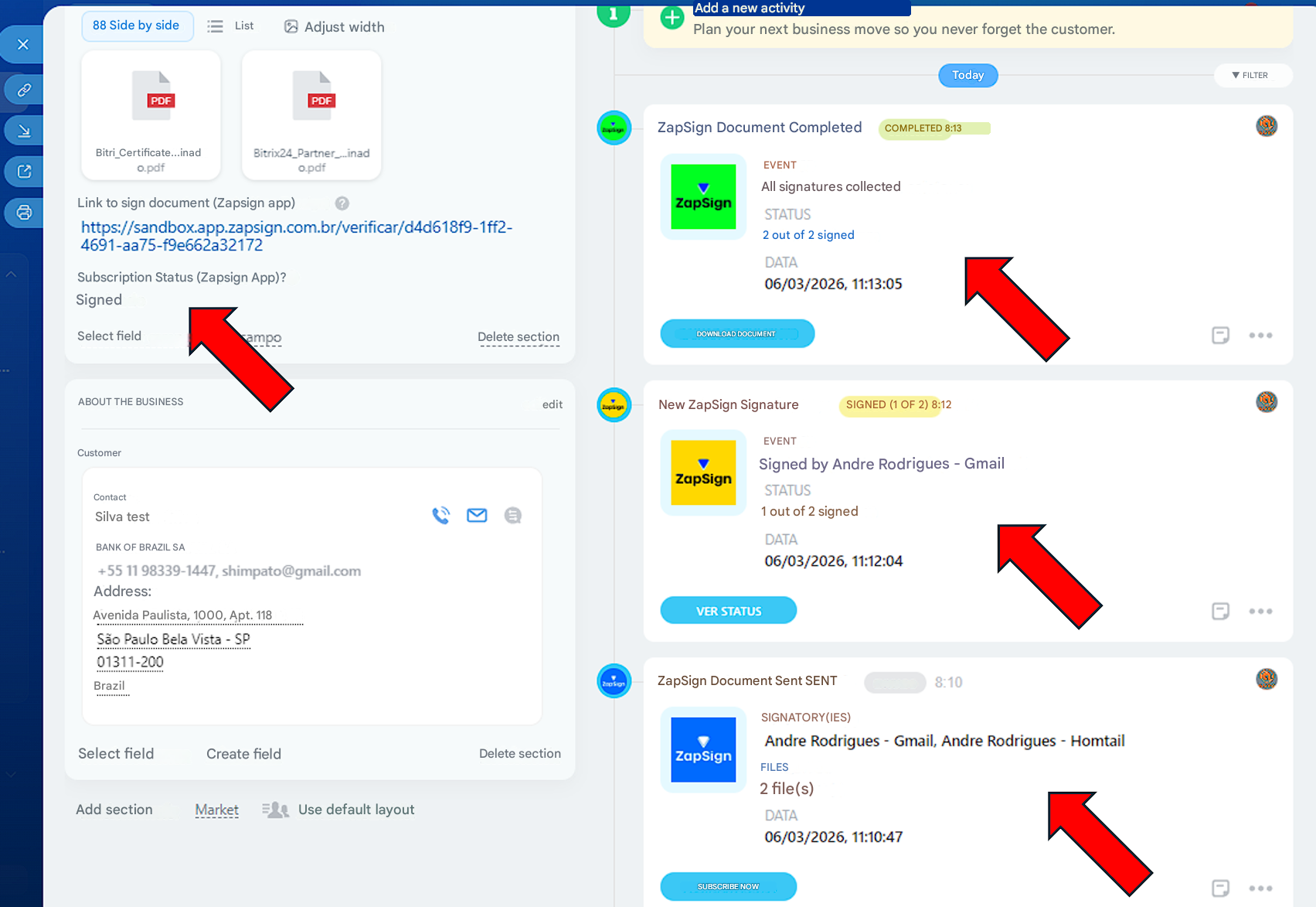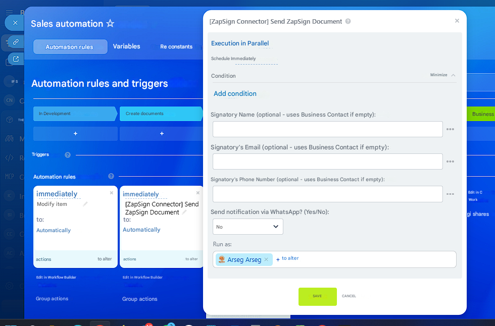 Create and send contracts via ZapSign in Bitrix24.