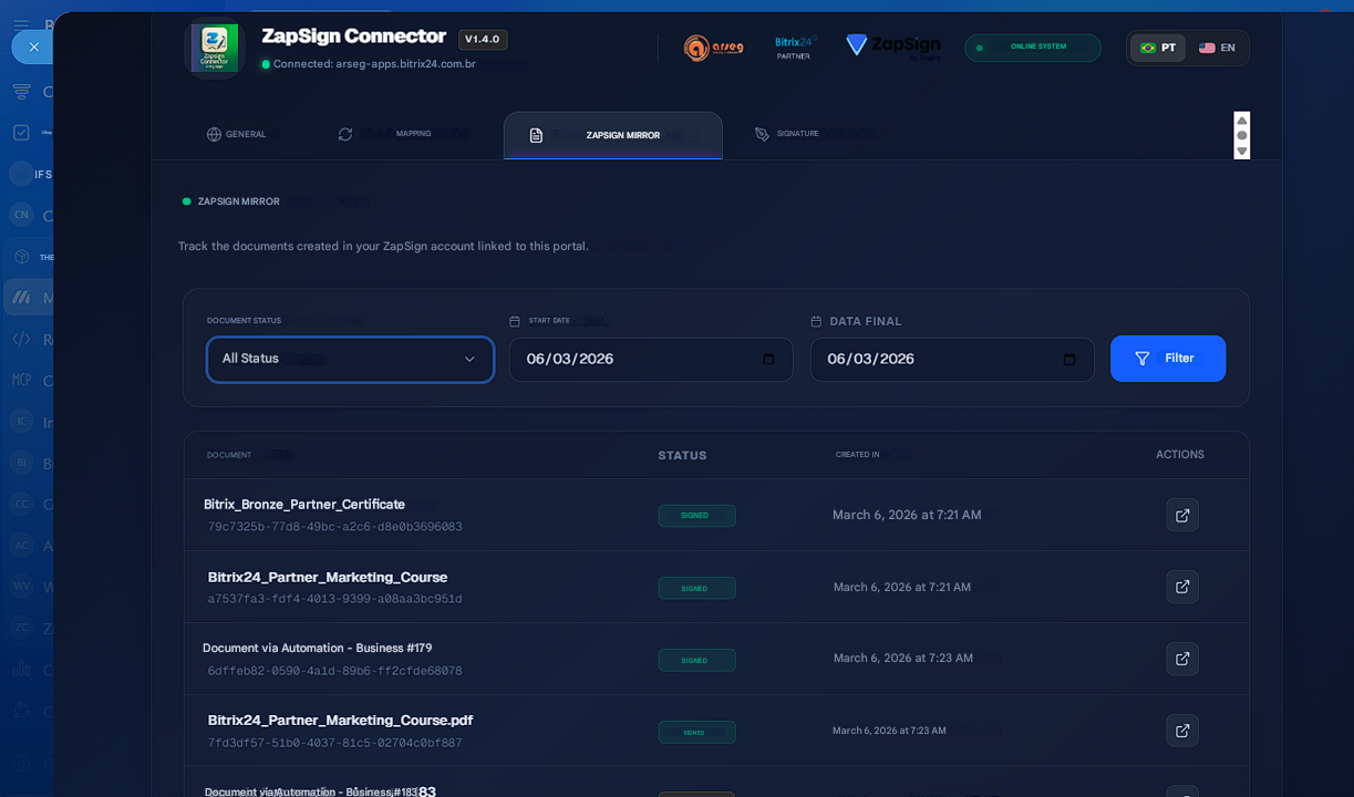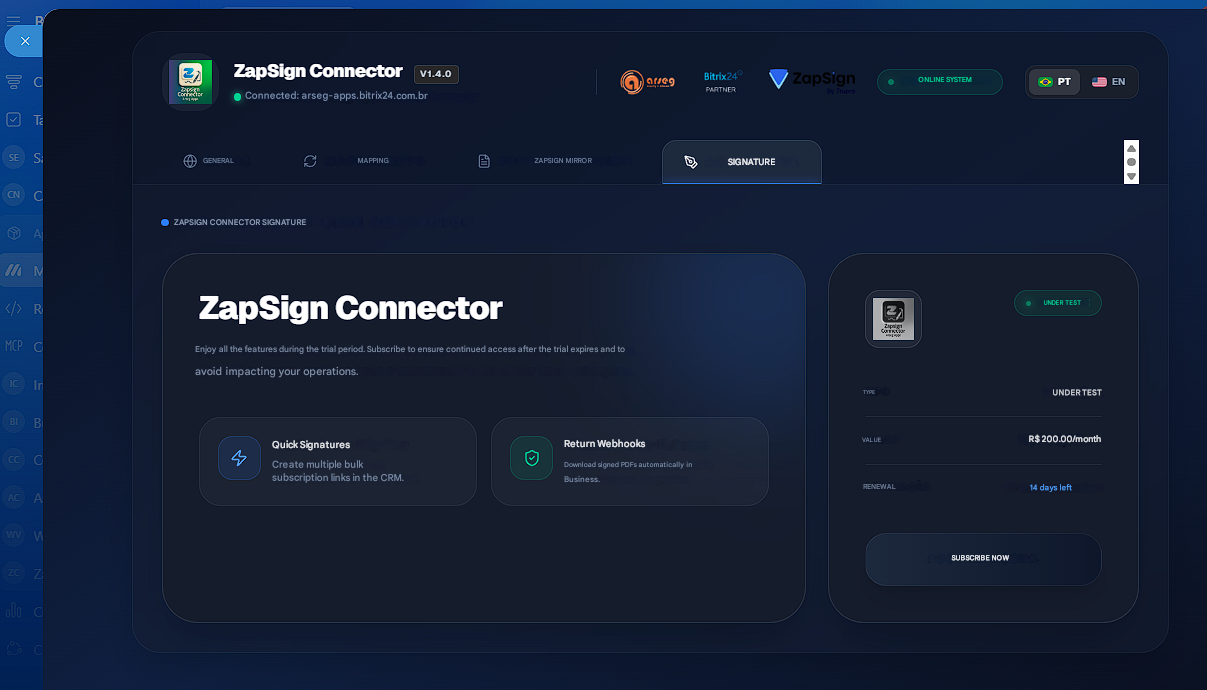 ZapSign Connector natively integrates your Bitrix24 with the ZapSign platform, allowing complete electronic signature management without leaving the CRM. Forget manual downloading and uploading; automate your sales and contract cycle from end to end.