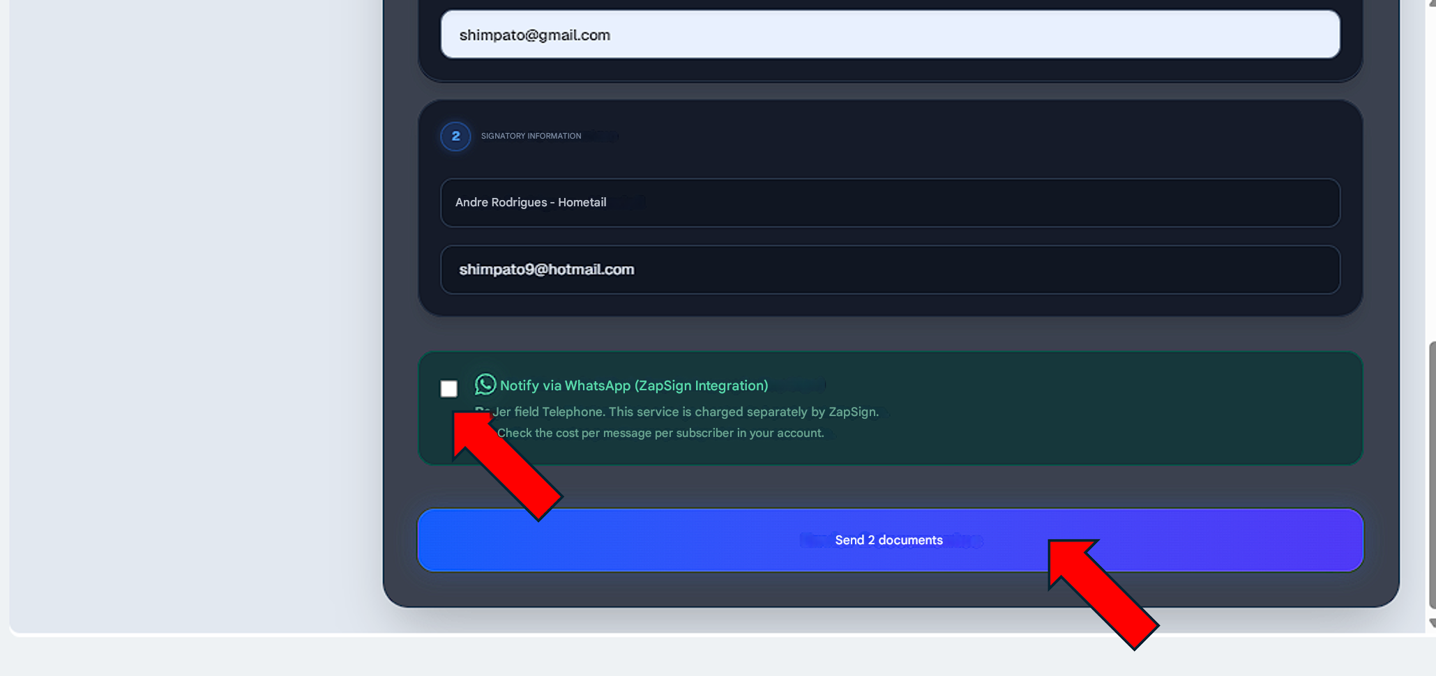 - Multi-Signers: Add multiple signers and send notifications via Email or WhatsApp.