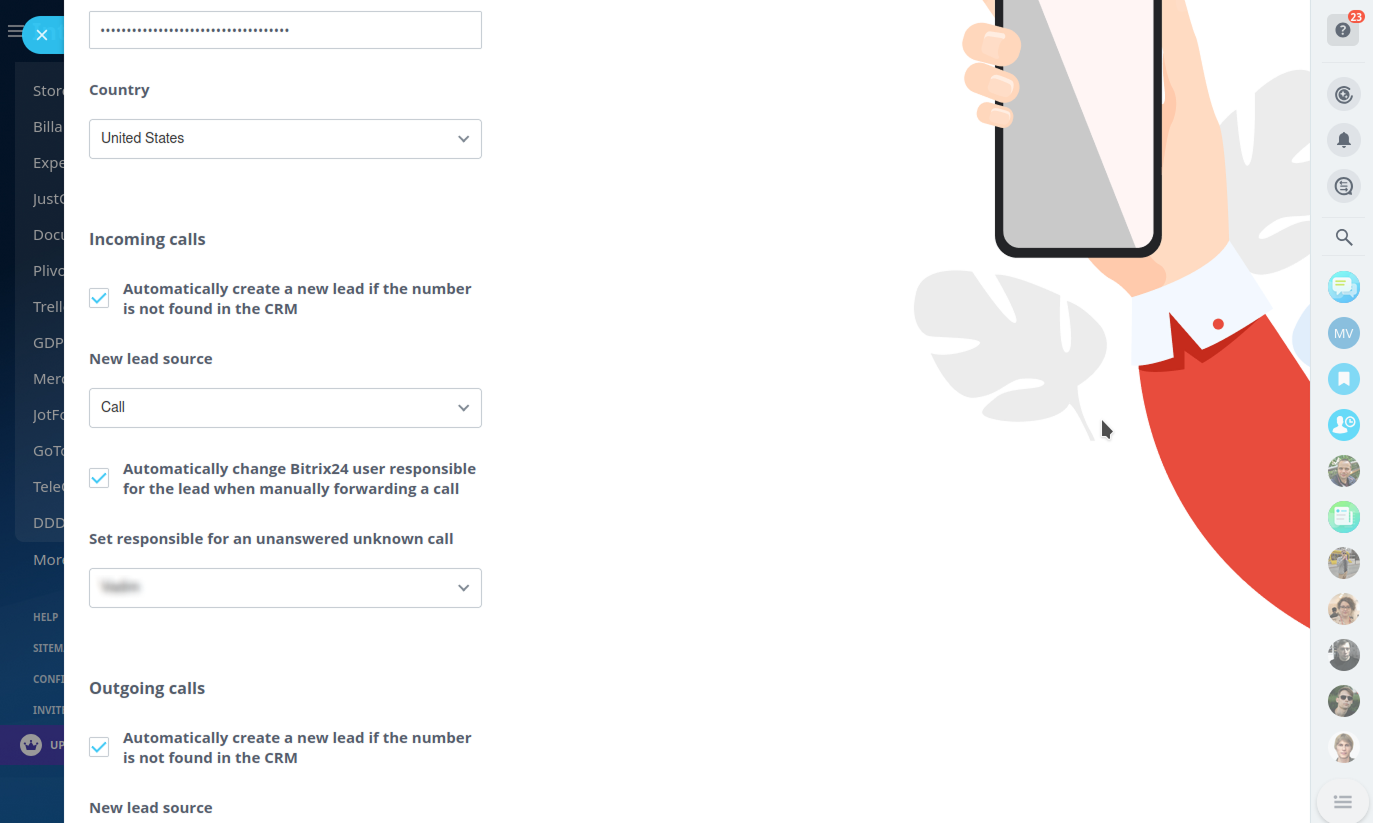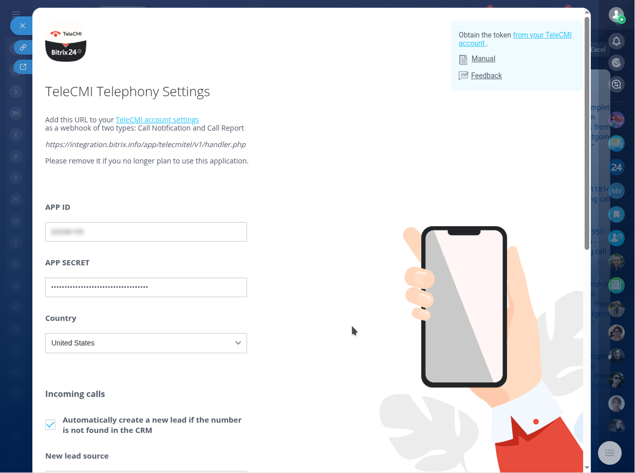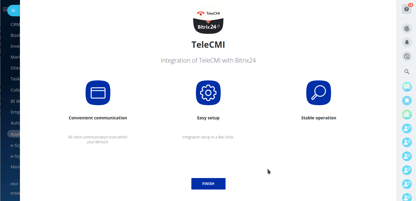 Receive and make calls from Bitrix24 via TeleCMI telephony.