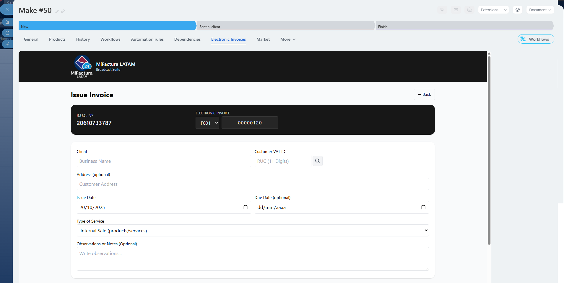 With MiFactura LATAM, your CRM becomes a powerful fiscal and administrative management tool, while always staying compliant with SUNAT’s legal requirements.
