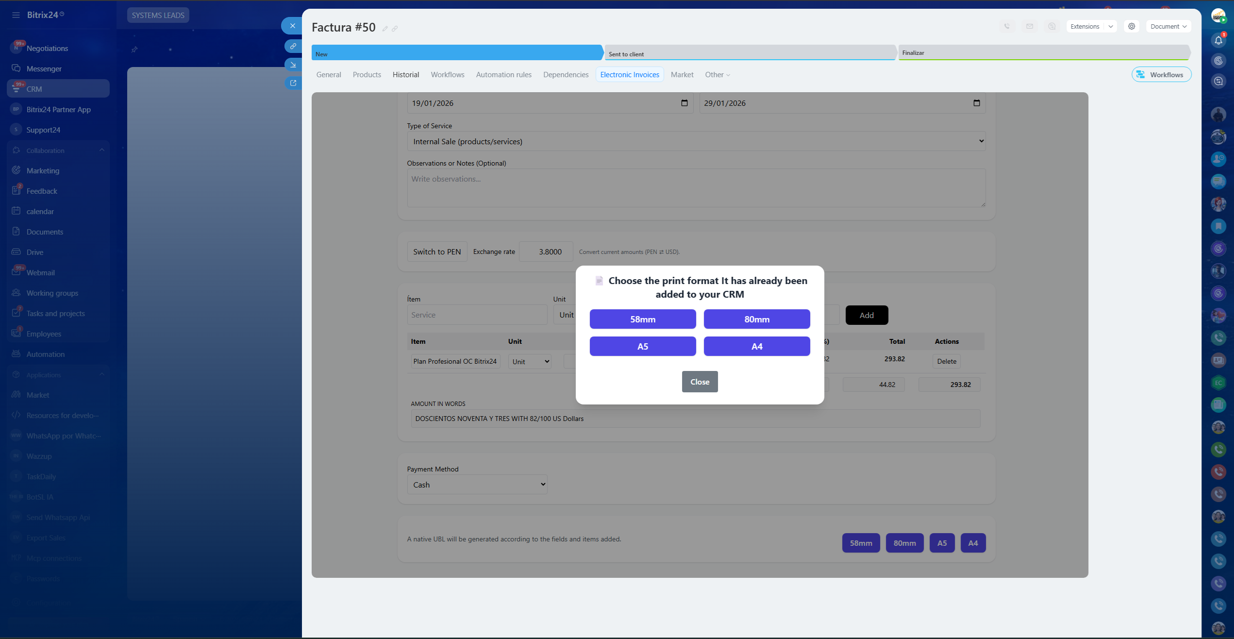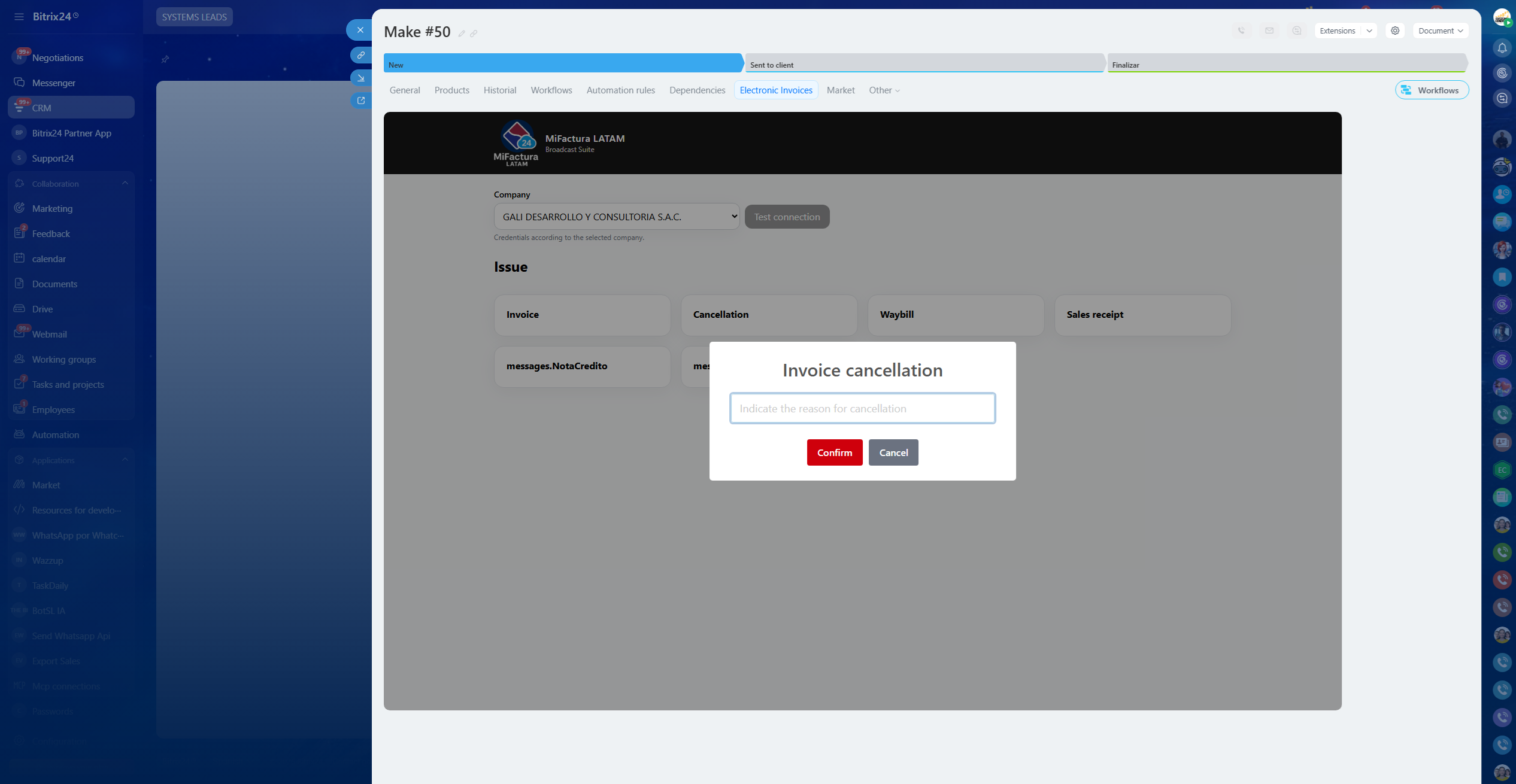 MiFactura LATAM: manage SUNAT receipts directly in Bitrix24