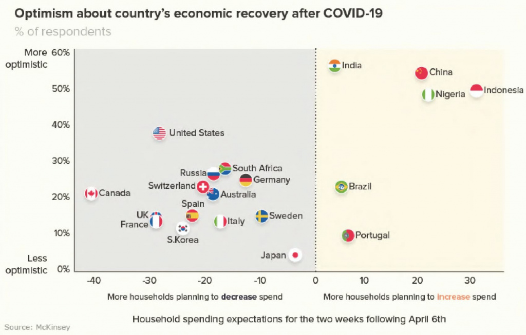 Another interesting metric here is the level of optimism about economic recovery after COVID-19, which indicates the general consensus among consumers in a particular country. As evident from the graph below (source - Visual Capitalist), there is still some hope left in the world - mostly, in India, China, and Indonesia.