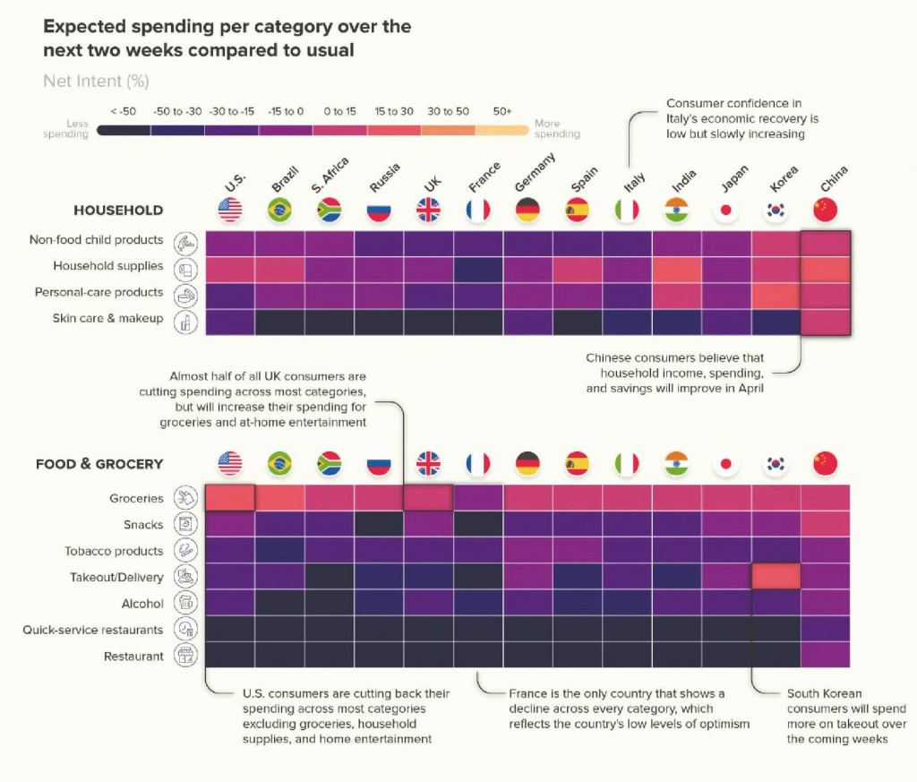 Visual Capitalist) offers an in-depth look at the expected consumer spending per category over the next two weeks (compared to usual) - a clear indicator of people’s expectations.
