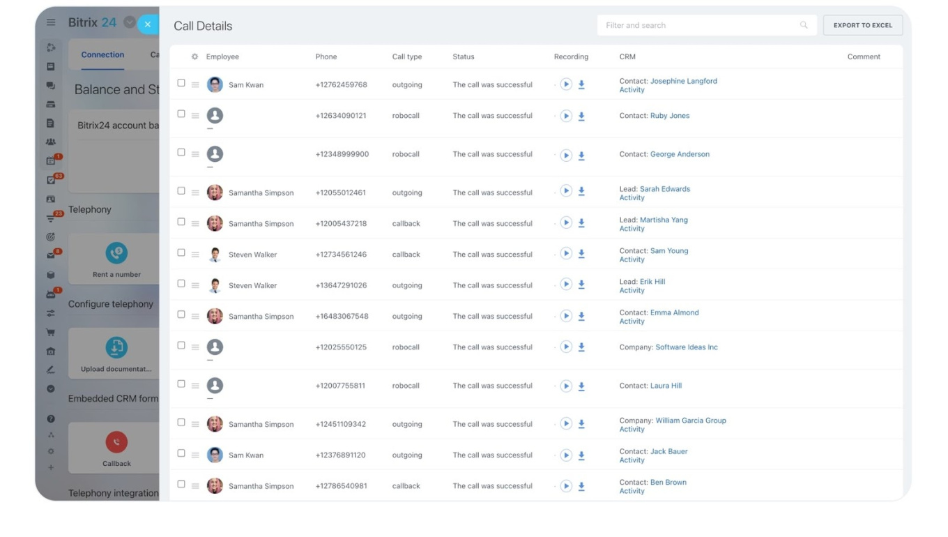 Bitrix24's Mobile CRM lets reps manage the full workflow from their phone: view lead records, update pipeline stages, send checkout links, and log notes. All without switching tools. This prevents delays like "I'll reply later" or "I'll send the link once I'm at my desk."