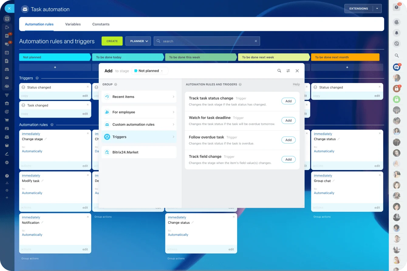 Bitrix24 combines task tracking, automation, and team chat in one platform. Proactively manage dependencies and keep sprints on track.