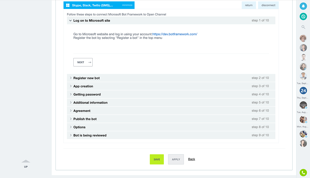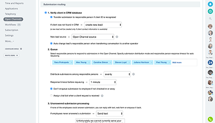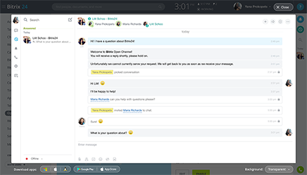 Open channels connect popular social networks and messaging platforms, such as Facebook, Skype, Instagram, Viber, Telegram, Slack and others to your Bitrix24 account. Messages are sent by your clients from these platforms, answered by your employees inside Bitrix24 and relayed back. All messages are logged and saved inside Bitrix24 CRM. Open channels support intelligent routing, queuing, rules, canned replies, bots and can be integrated with website live chat and Bitrix24.Network.