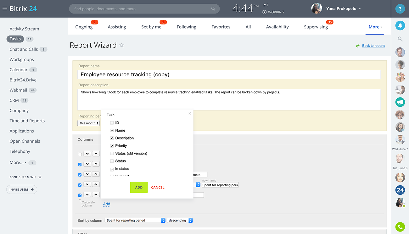Task Reports are an easy way to learn how much time an employee spends on a certain task or project. Using this convenient tool, you can also see how many tasks are still being worked on, and how many of them are already fulfilled. By default, Task Reports can be submitted on a weekly, monthly, or yearly basis, but you can always set custom reporting dates.