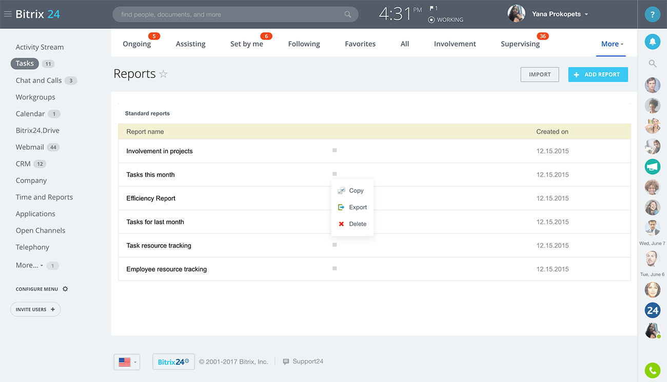 Any combination of employees can be collected into a workgroup which contains all the social networking and organizational tools needed to optimize operations and utilize the highly efficient communications methods available in Bitrix24.
