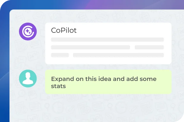 เพียงแจ้งให้ทราบ แล้ว CoPilot ของเราจะคิดค้นไอเดียออกมาอย่างรวดเร็ว ขยายไอเดียเดิมของคุณ สร้างสรุปสั้นๆ หรือข้อความขนาดใหญ่ หรือตรวจหาข้อผิดพลาด ต้องการเพิ่มภาพต้นฉบับอย่างนั้นหรือ? ไม่มีปัญหา CoPilot สามารถสร้างภาพได้เช่นกัน