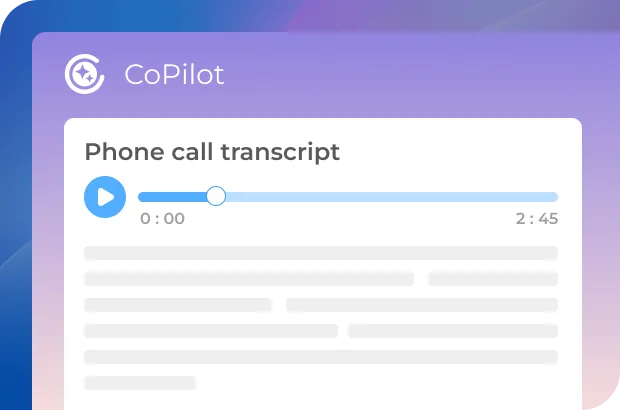 วางสายโทรศัพท์หลังจากการโทร 35 นาทีกับลูกค้าใช่หรือไม่? ไม่จำเป็นต้องย้อนกลับไปฟังทั้งหมด – CoPilot ของเราจะถอดความการโทรของคุณ ในรูปแบบข้อความที่ดีและอ่านง่าย