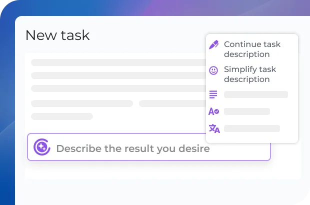 ผู้ช่วย AI ส่วนตัวของคุณพร้อมเสมอที่จะช่วยเหลือ เมื่อคุณกำลังวางแผนโครงการ หรือสร้างงานใหม่ CoPilot สามารถคิดคำอธิบายงานสั้นๆ และสามารถเข้าใจได้ออกมาได้ง่ายๆ โดยอิงตามการแจ้งของคุณ และแม้กระทั่งนำเสนอรายการตรวจสอบที่เหมาะกับงาน
