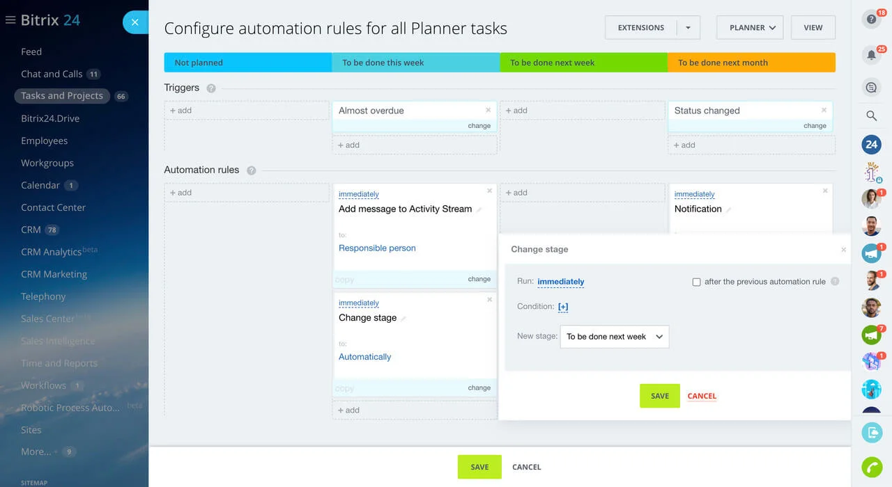 Routine HR tasks can drain resources if handled manually. Intelligent workflow automation in Bitrix24, powered by AI, significantly reduces the burden on HR teams.